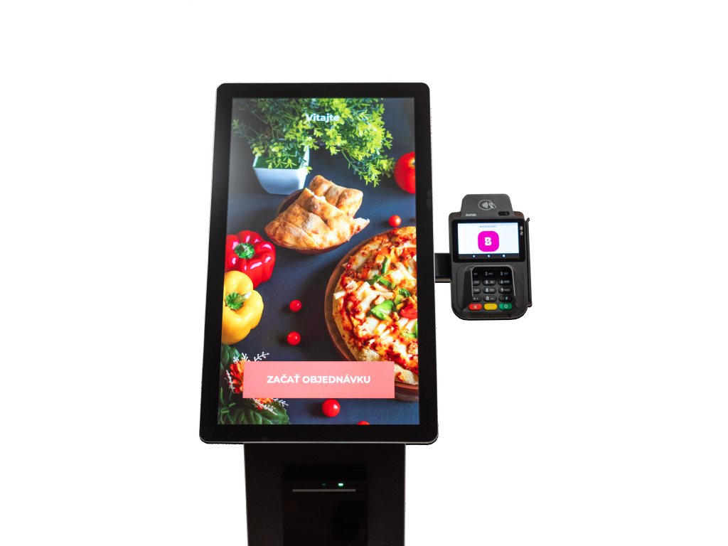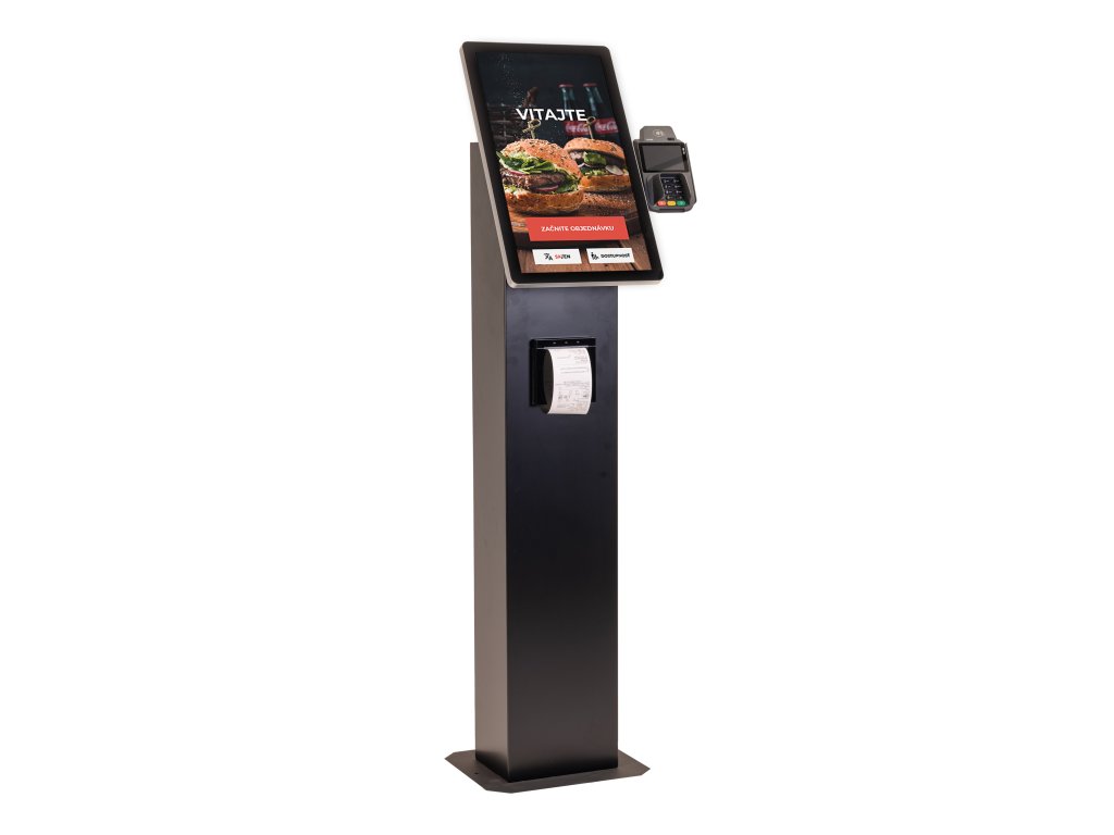 Kiosk je vybavený 21,5-palcovou obrazovkou, ktorá zaručuje kvalitný a jasný vizuálny zážitok. Vďaka tlačiarni dokladov je ideálnym riešením pre vystavovanie dokladov a potvrdení pri rôznych obchodných transakciách.