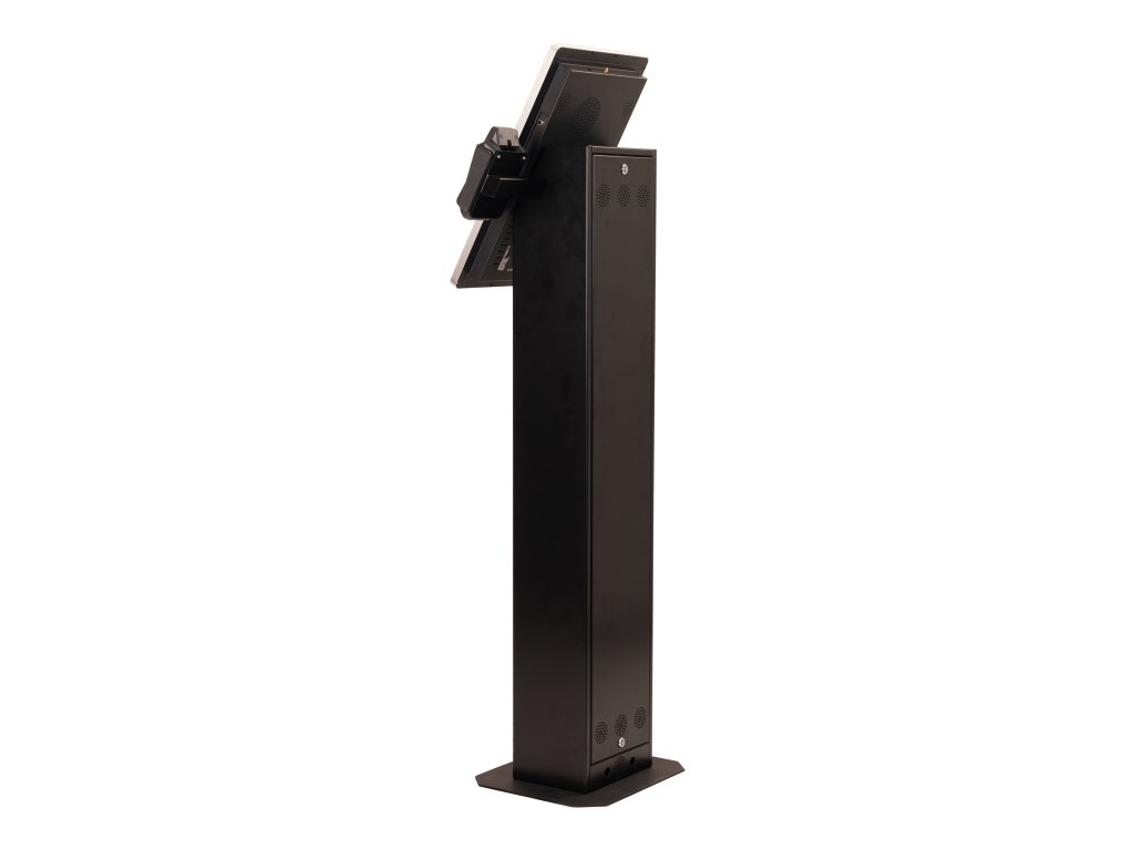 Kiosk DSOK 01 je samostatne stojace zariadenie, ktoré vyniká svojím elegantným čiernym dizajnom, vhodným do rôznych obchodných a verejných priestorov. S kompaktnými rozmermi 480 mm x 1430 mm x 400 mm a hmotnosťou 35 kg poskytuje stabilitu a robustnosť, pričom sa pohodlne integruje do interiéru.